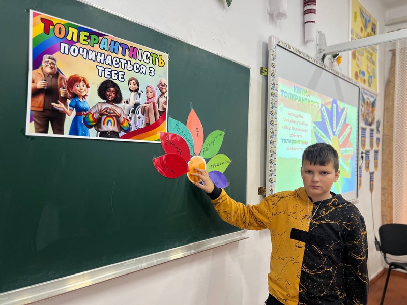 Сьогодні ми відкривали для себе справжню суть толерантності — повагу, прийняття та доброзичливість. Ми разом добирали правила толерантної спільноти та риси людини, яка вміє чути й цінувати іншого. Визначали, наскільки ми толерантні з оточуючими.